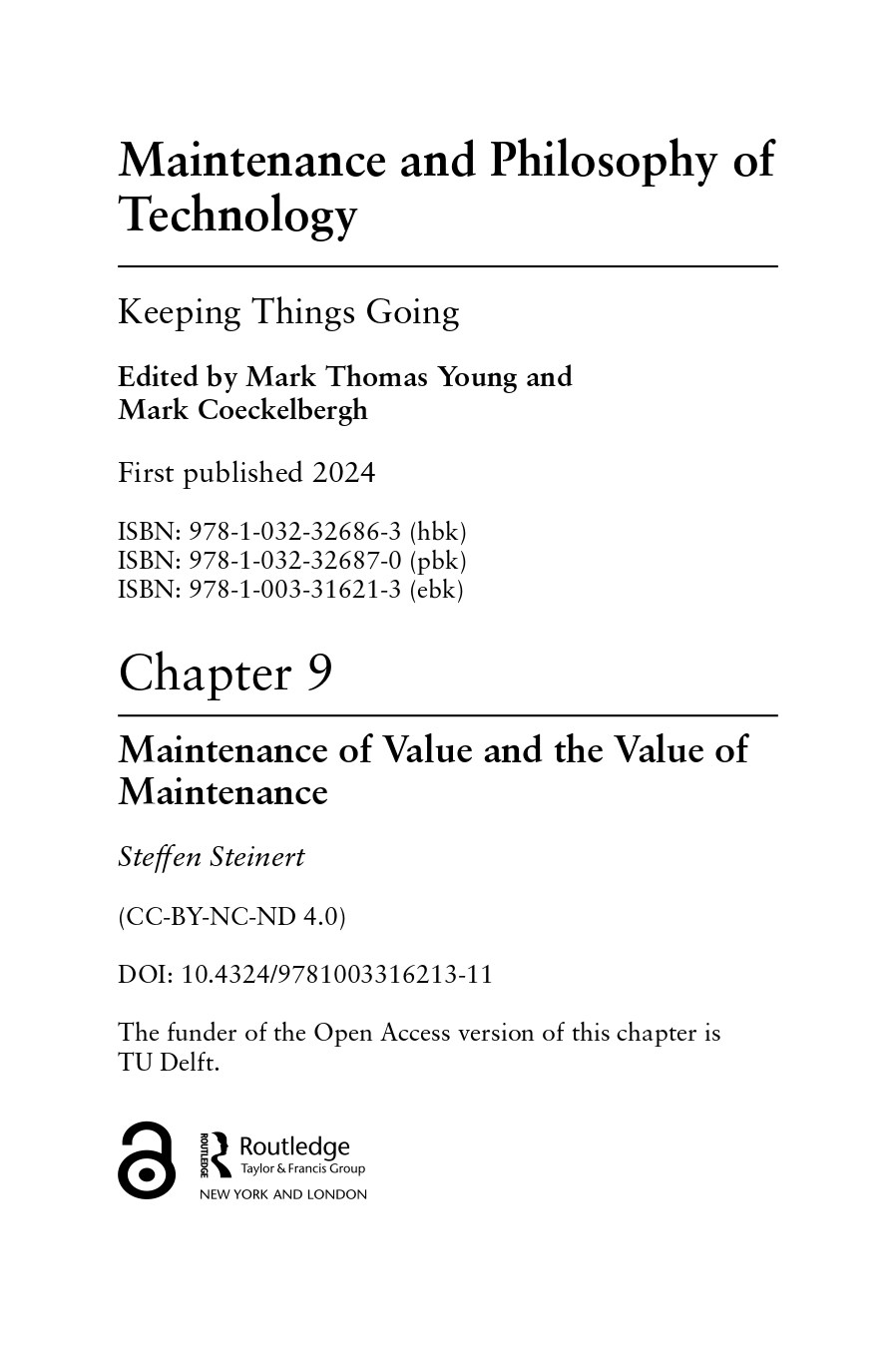 Chapter 9 Maintenance of Value and the Value of Maintenance / Steffen Steinert