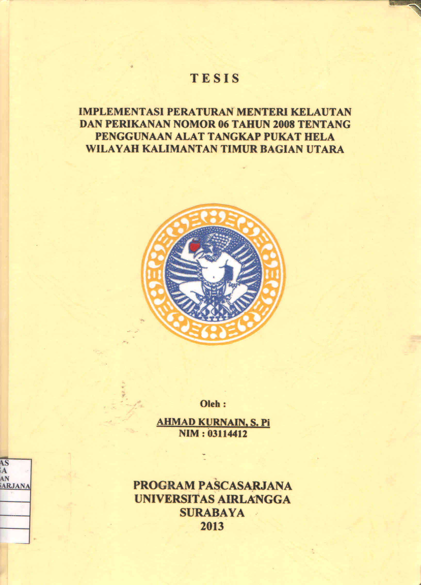 | Judul | Implementasi Peraturan Menteri Kelautan dan Perikanan Nomor 06 Tahun 2008 Tentang Penggunaan Alat Tangkap Pukat Hela Wilayah Kalimantan Timur Bagian Utara / Ahmad Kurnain |