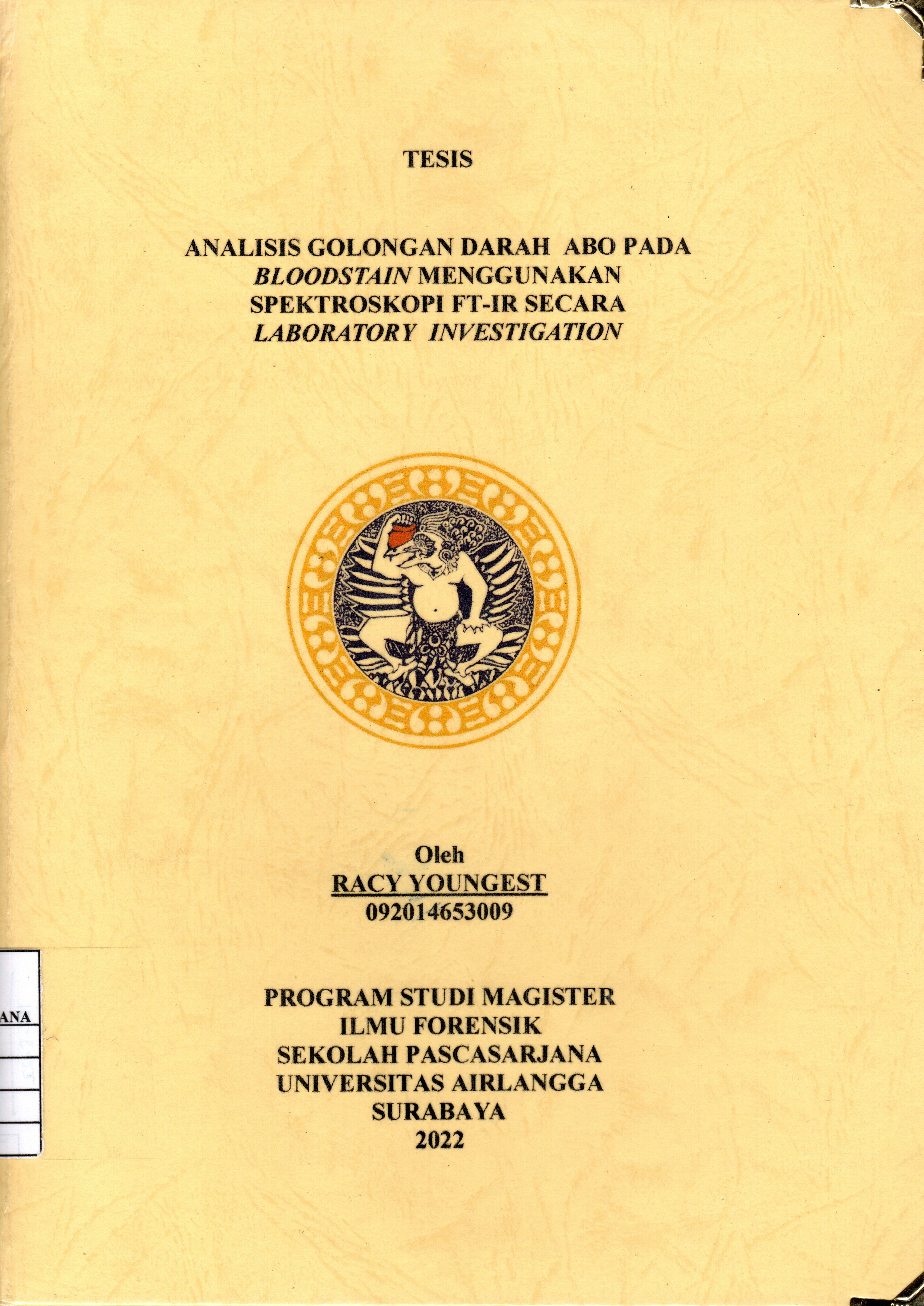 | Judul | Analisis Golongan Darah ABO pada Bloodstain menggunakan Spektroskopi FT-IR secara Laboratory Investigation / Racy Youngest |