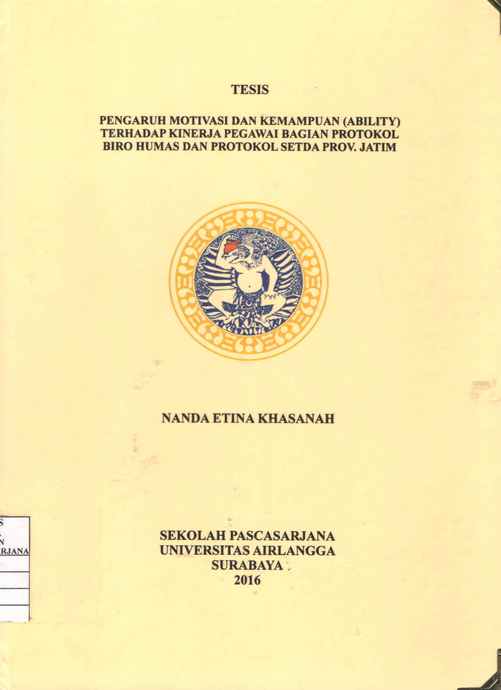 | Judul | Pengaruh Motivasi dan Kemampuan (Ability) Terhadap Kinerja Pegawai Bagian Protokol Biro Humas dan Protokol Setda Prov. Jatim / Nanda Etina Khasanah |