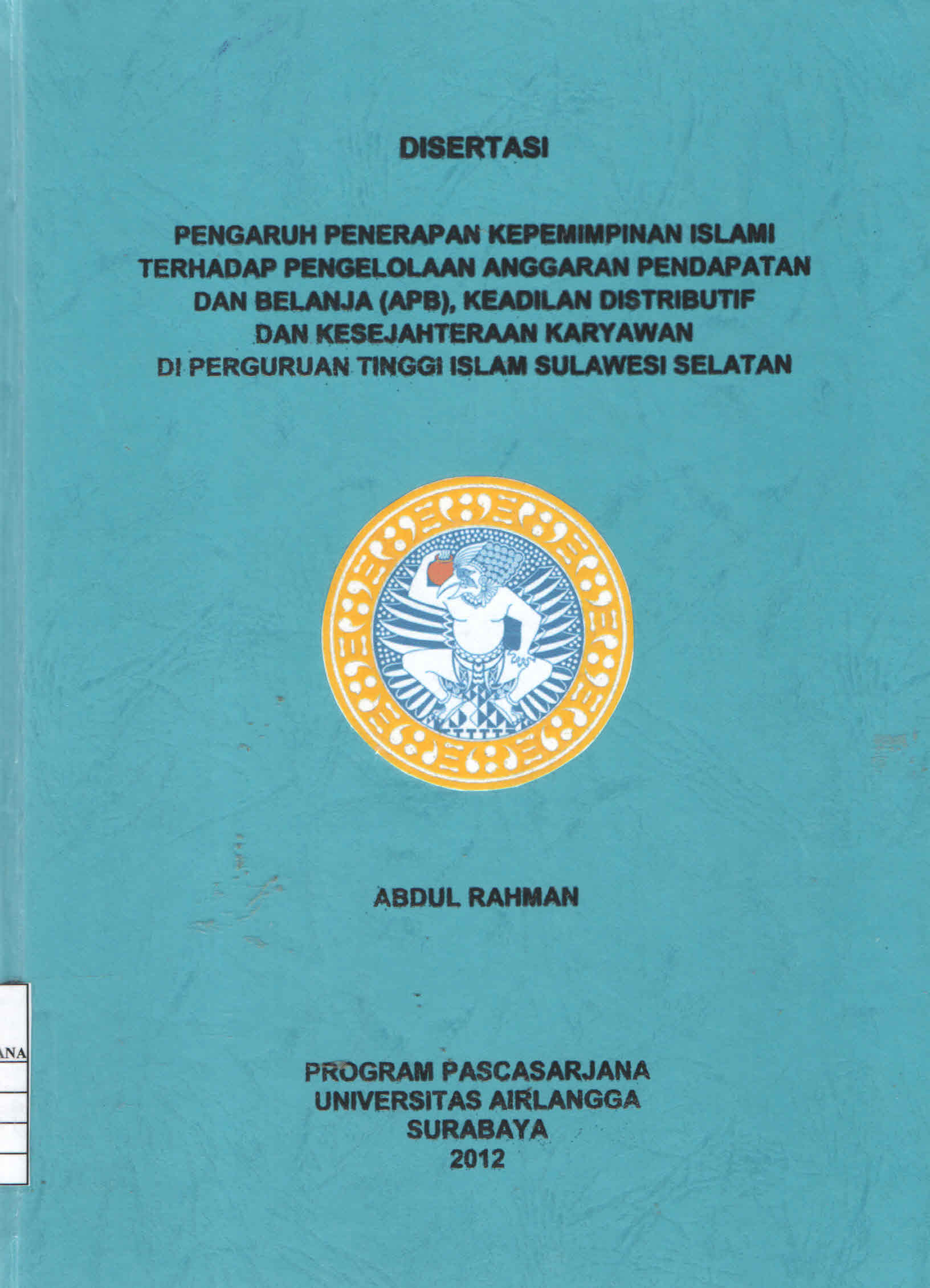 | Judul | Pengaruh Penerapan Kepemimpinan Islami Terhadap Pengelolaan Anggaran Pendapatan dan Belanja (APBD), Keadilan Distributif dan Kesejahteraan Karyawan di Perguruan Tinggi Islam Sulawesi Selatan / Abdul Rahman |