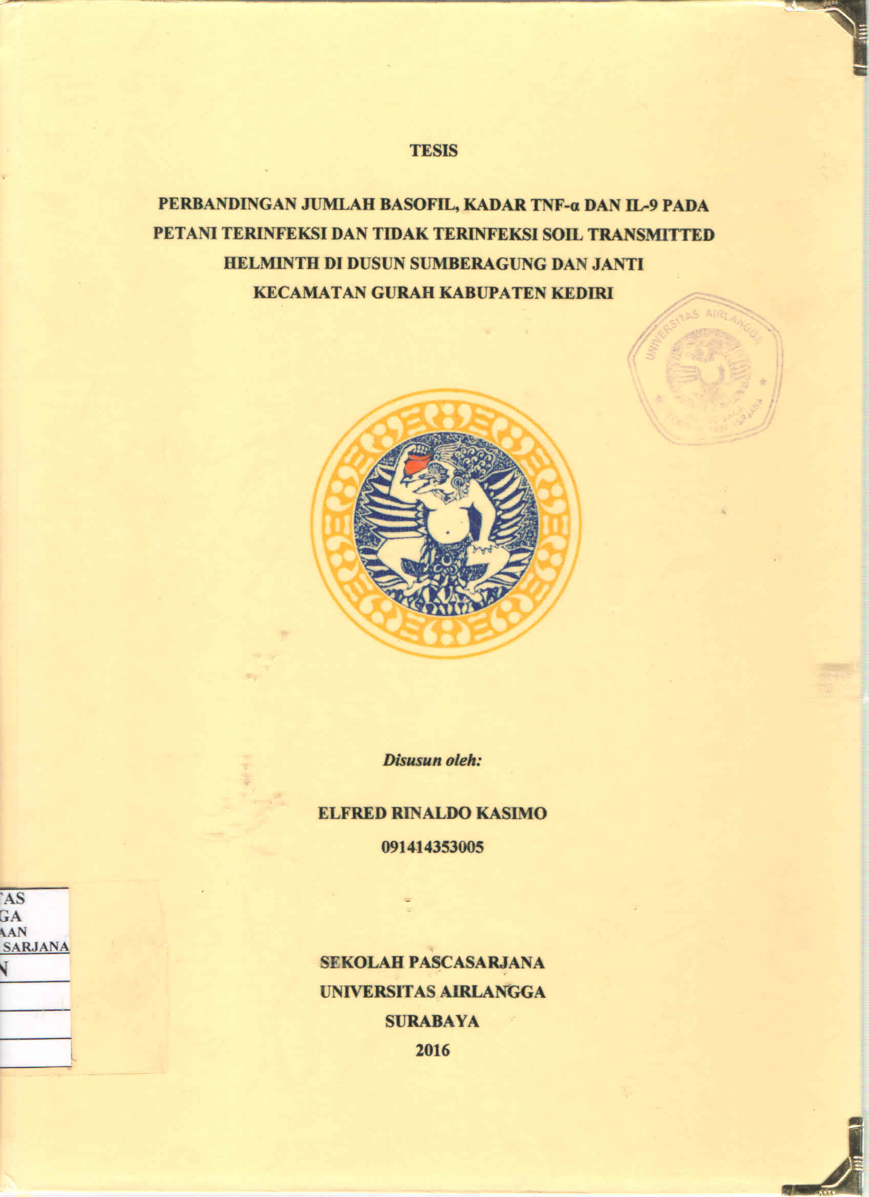 | Judul | Perbandingan Jumlah Basofil, Kadar TNF-? dan IL-9 Pada Petani Terinfeksi dan Tidak Terinfeksi Soil Transmitted Helminth di Dusun Sumberagung dan Janti Kecamatan Gurah Kabupaten Kediri / Elfred Rinaldo Kasimo |