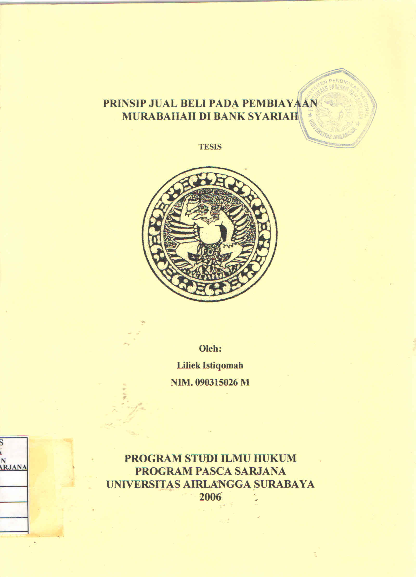 | Judul | Prinsip Jual Beli Pada Pembiayaan Murabahah di Bank Syariah / Liliek Istiqomah |