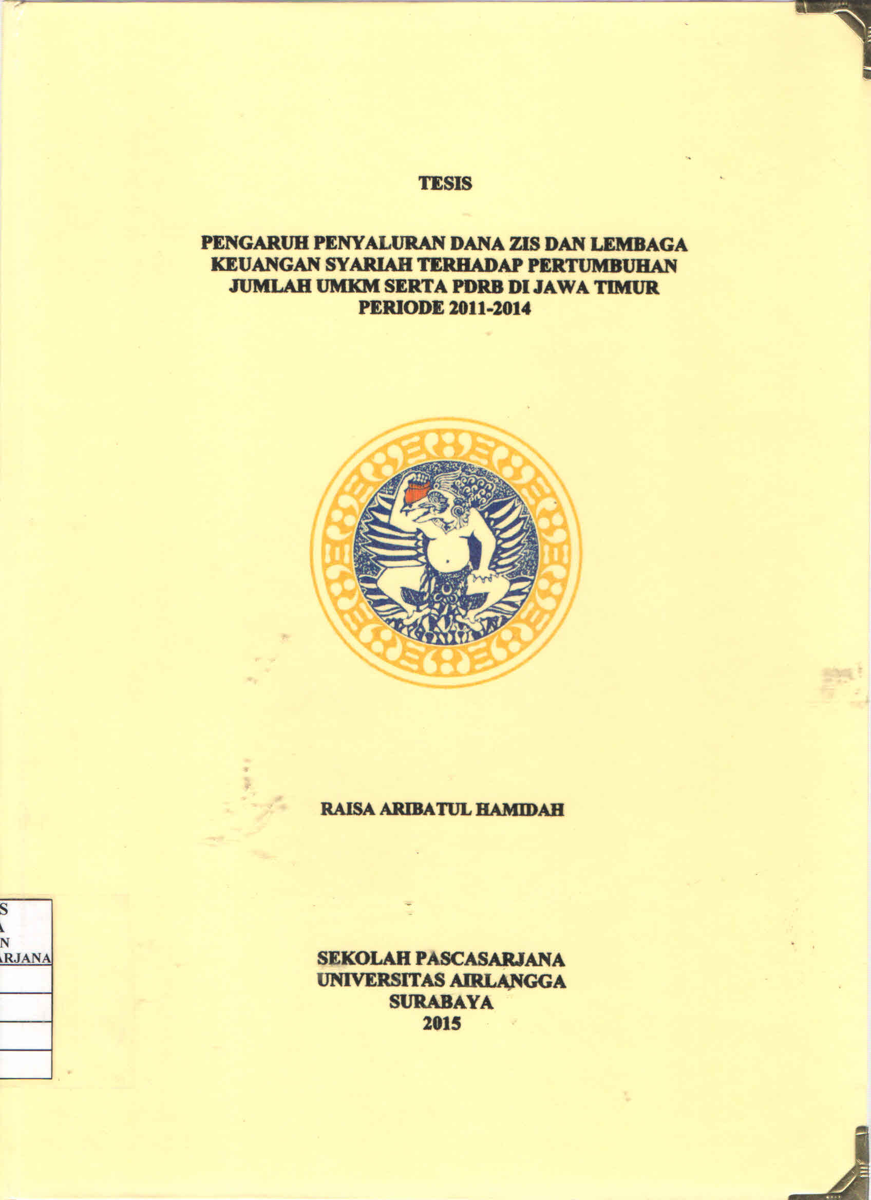 | Judul | Pengaruh Penyaluran Dana ZIS dan Lembaga Keuangan Syariah Terhadap Pertumbuhan Jumlah UMKM serta PDRB di Jawa Timur Periode 2011-2014 / Raisa Aribatul Hamidah |