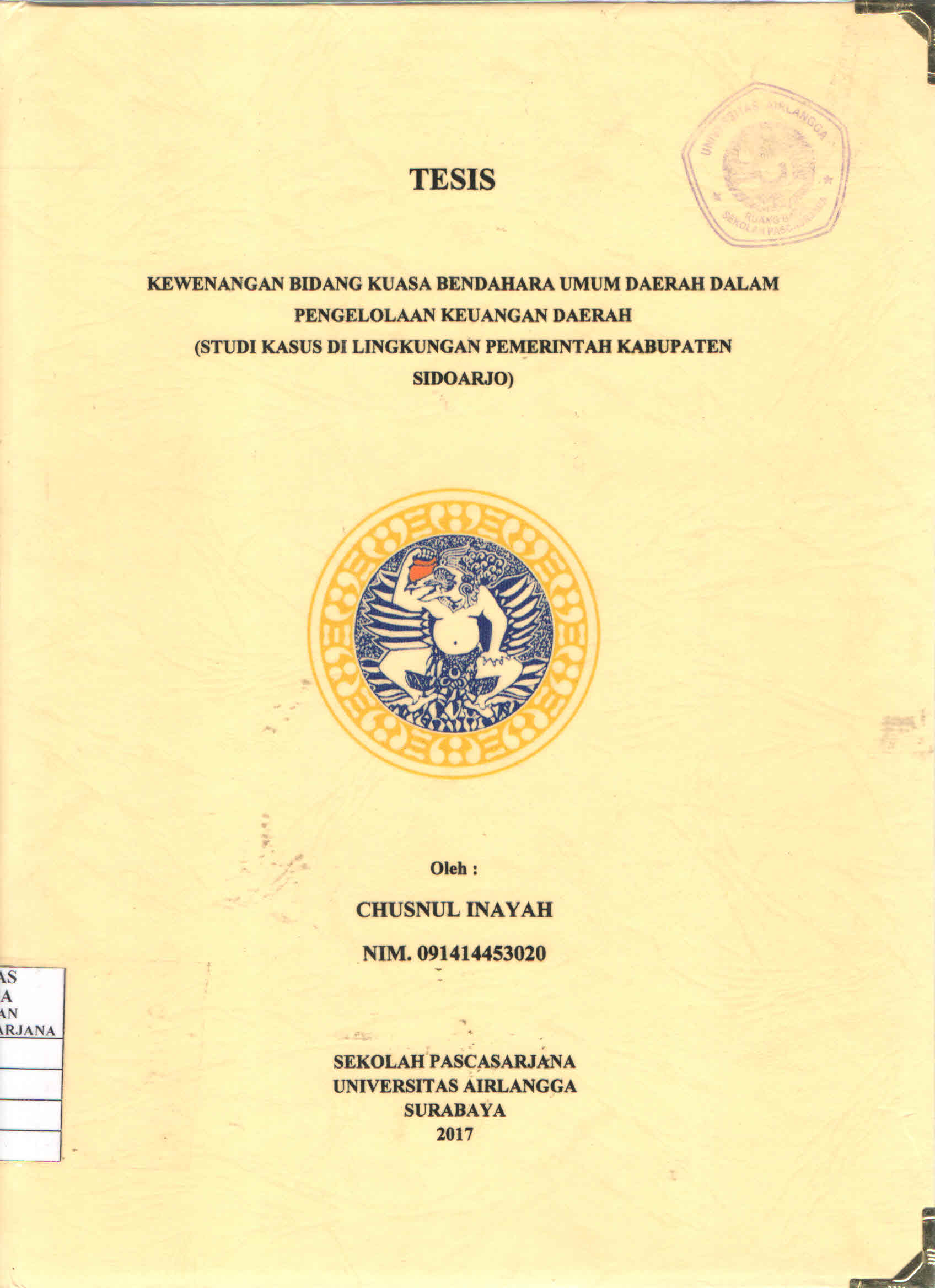 | Judul | Kewenangan Bidang Kuasa Bendahara Umum Daerah dalam Pengelolaan Keuangan Daerah : Studi Kasus di Lingkungan Pemerintah Kabupaten Sidoarjo / Chusnul Inayah |