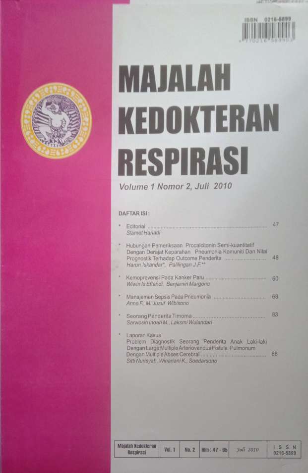 | Catatan | Hubungan pemeriksaan procalcitonin semi-kuantitatif dengan derajat keparahan pneulonia komuniti dan nilai Kemoprevensi pada kanker paru Manajemen sepsis pada penumonia Seorang penderita timoma |