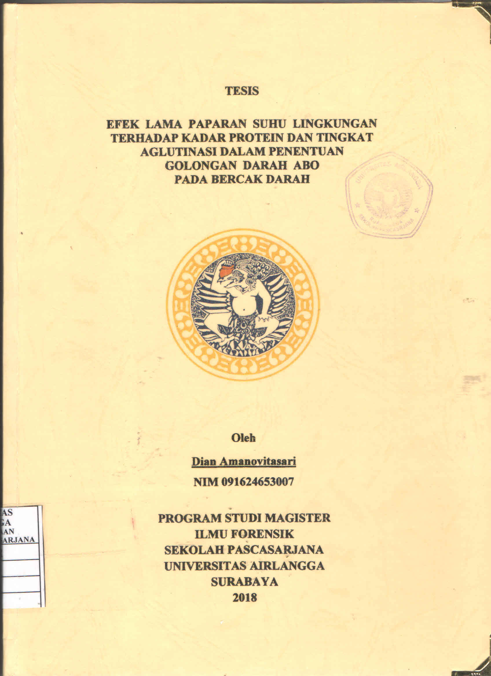 | Judul | Efek Lama Paparan Suhu Lingkungan Terhadap Kadar Protein dan Tingkat Aglutinasi dalam Penentuan Golongan Darah ABO pada Bercak Darah / Dian Amanovitasari |