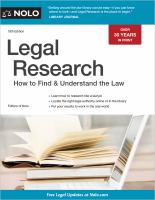 | Judul | Legal Research : How to Find & Understand the Law / Nolo (Editor) |