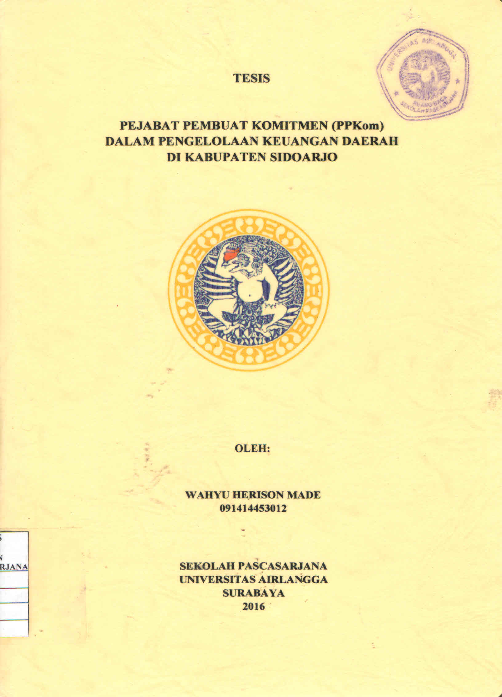 | Judul | Pejabat Pembuat Komitmen (PPKom) dalam Pengelolaan Keuangan Daerah di Kabupaten Sidoarjo / Wahyu Herison Made |