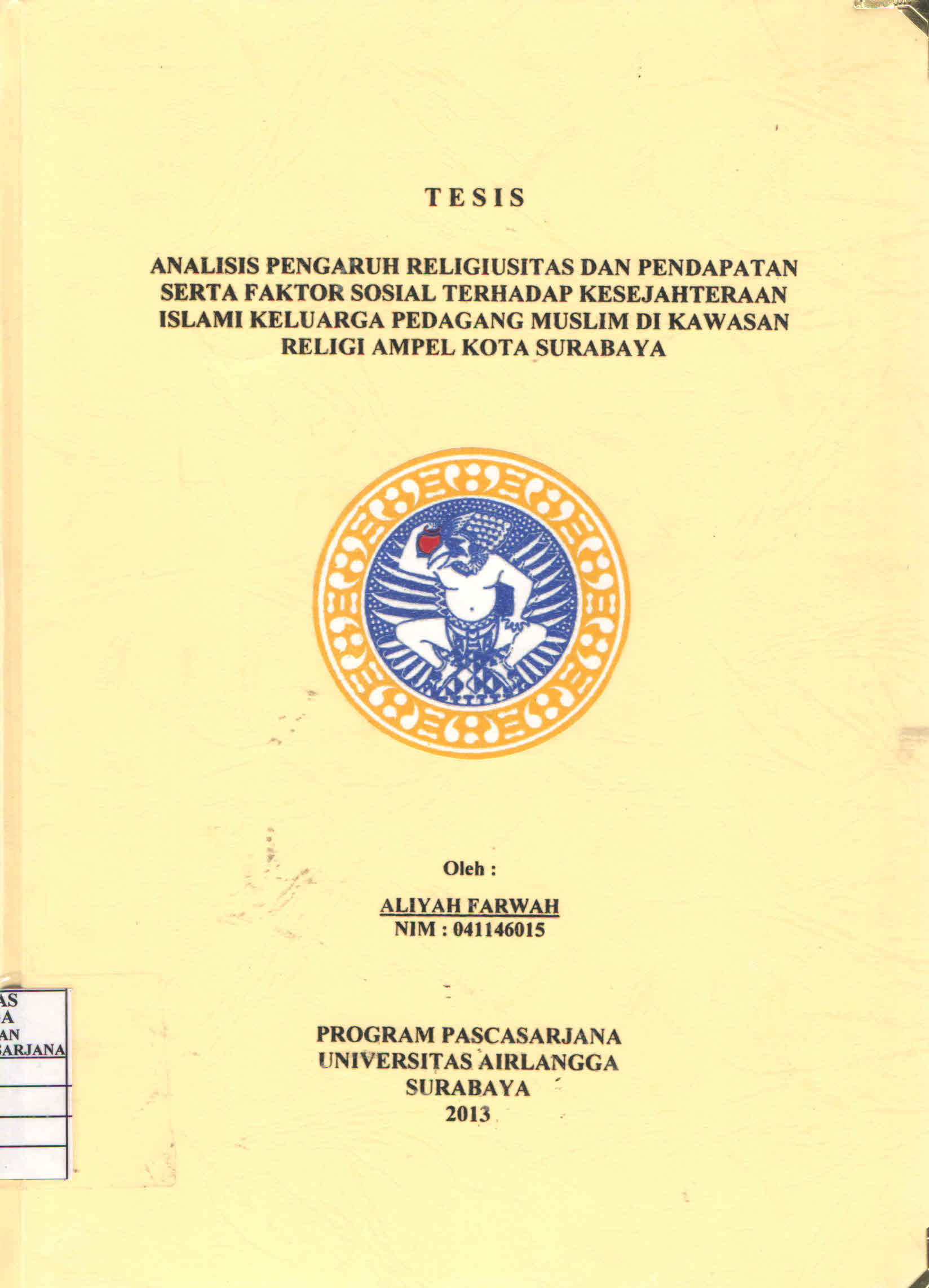 | Judul | Analisis Pengaruh Religiusitas dan Pendapatan serta Faktor Sosial Terhadap Kesejahteraan Islami Keluarga Pedagang Muslim di Kawasan Religi Ampel Kota Surabaya / Aliyah Farwah |
