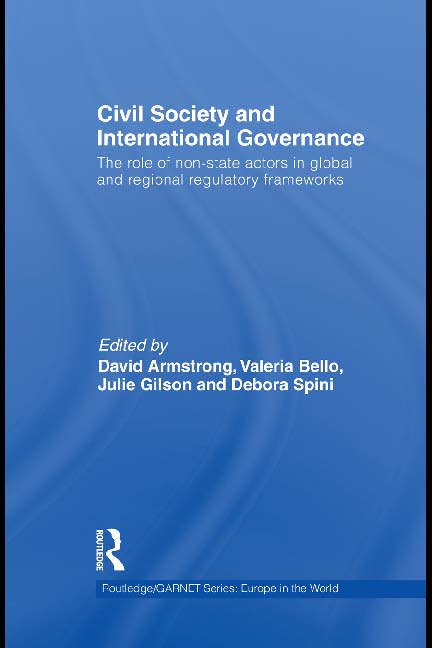 Judul Civil Society and International Governance : The Role Of Non-State Actors In Global And Regional Regulatory Frameworks / David Armstrong, Valeria Bello, Julie Gilson and Debora Spin (Editor)