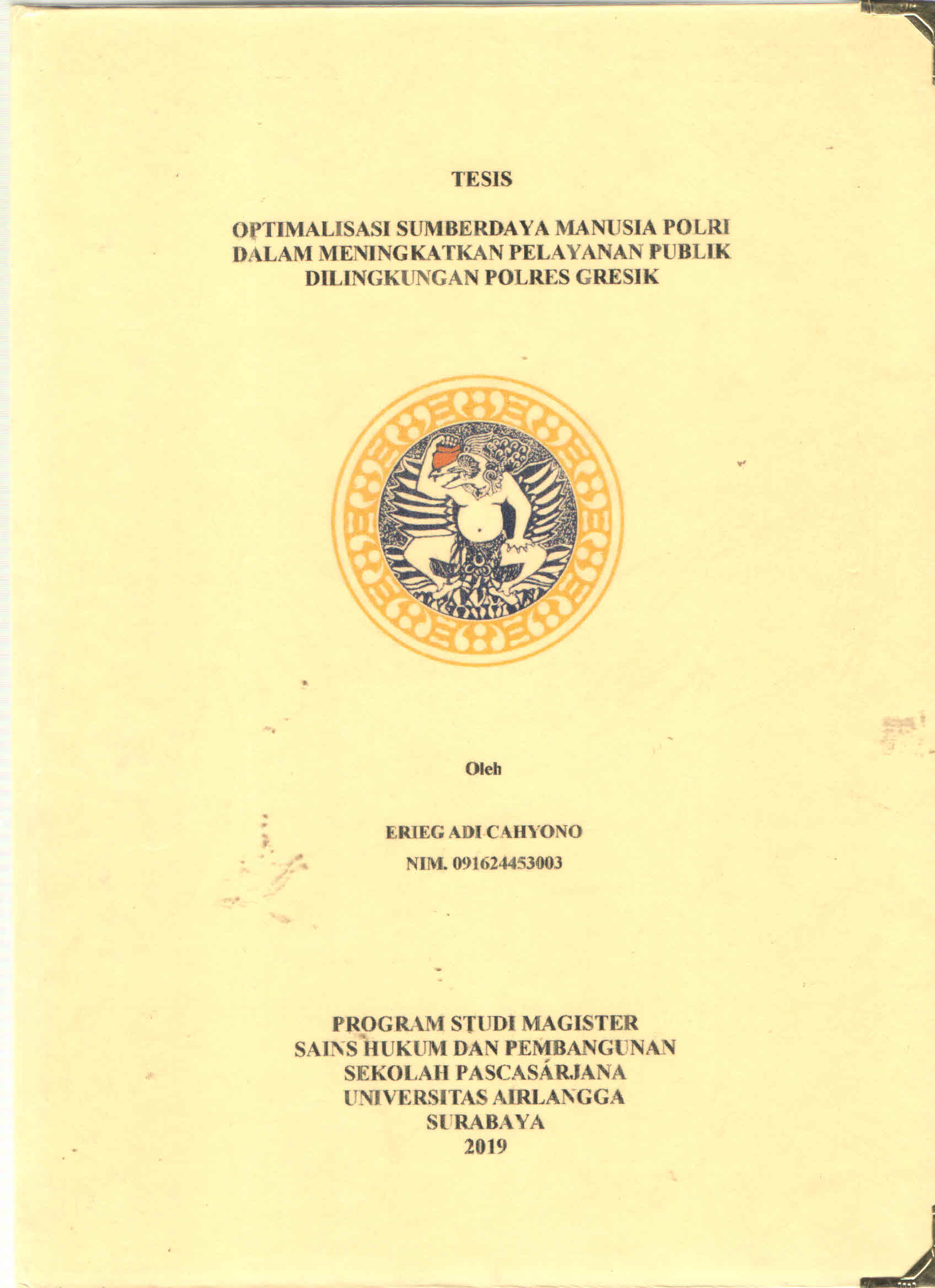 | Judul | Optimalisasi Sumber Daya Manusia Polri dalam Meningkatkan Pelayanan Publik di Lingkungan Polres Gresik / Erieg Adi Cahyono |