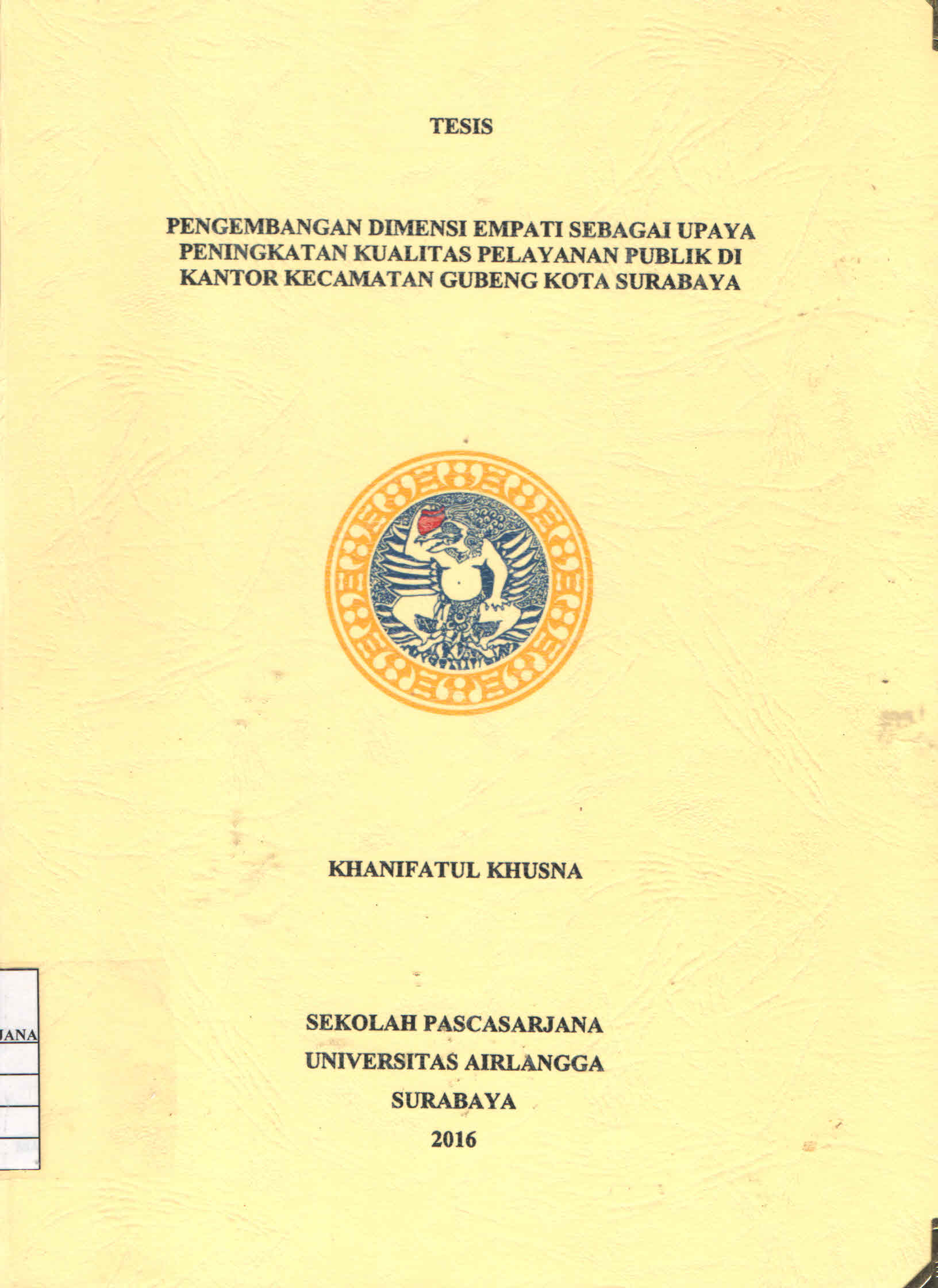 | Judul | Pengembangan Dimensi Empati Sebagai Upaya Peningkatan Kualitas Pelayanan Publik di Kantor Kecamatan Gubeng Kota Surabaya / Khanifatul Khusna |