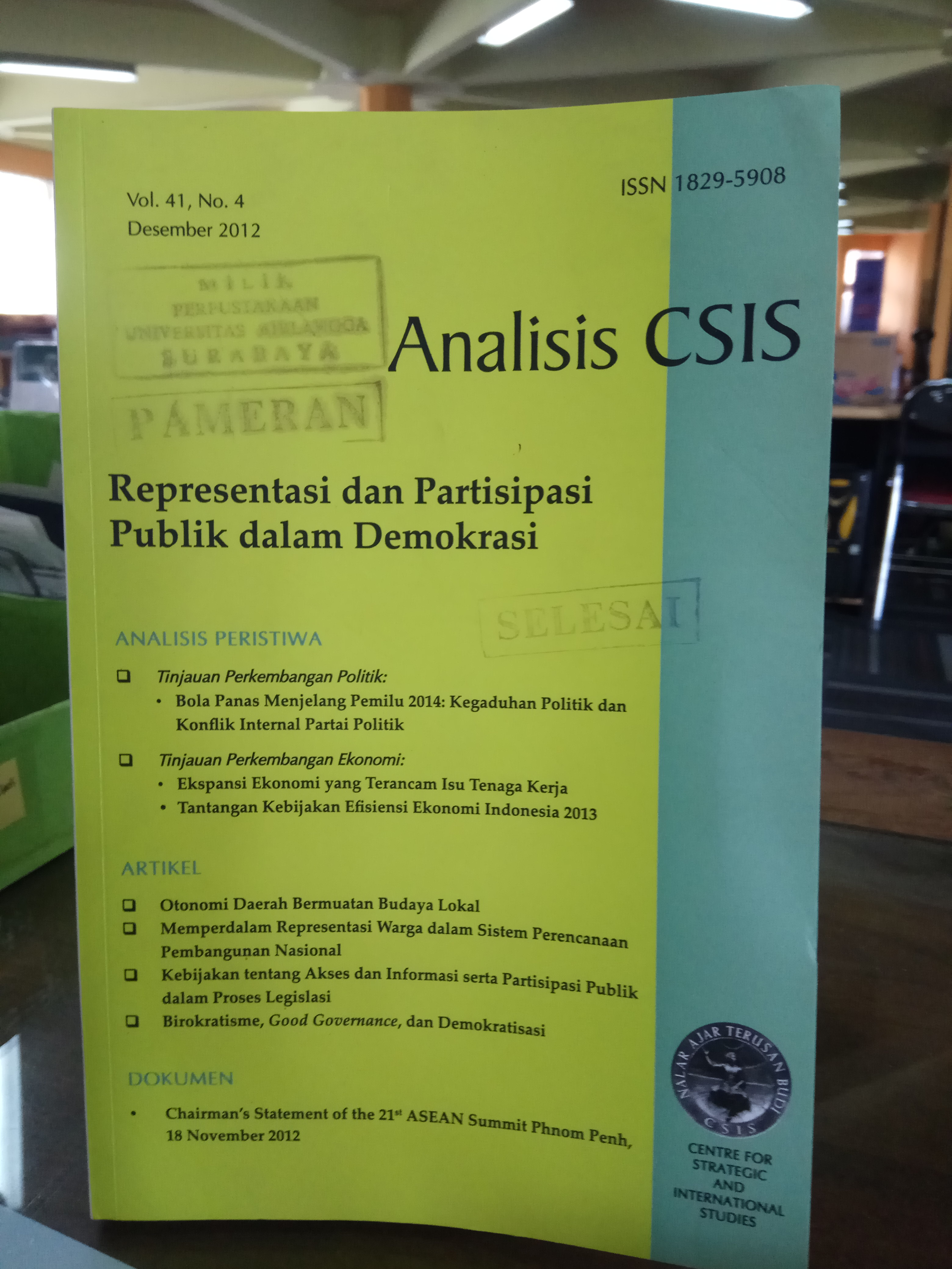 | Judul | Analisis CSIS : Representasi dan Partisipasi Publik dalam demokrasi Vol. 41 No. 4 / Vidhyandika D. Perkasa |