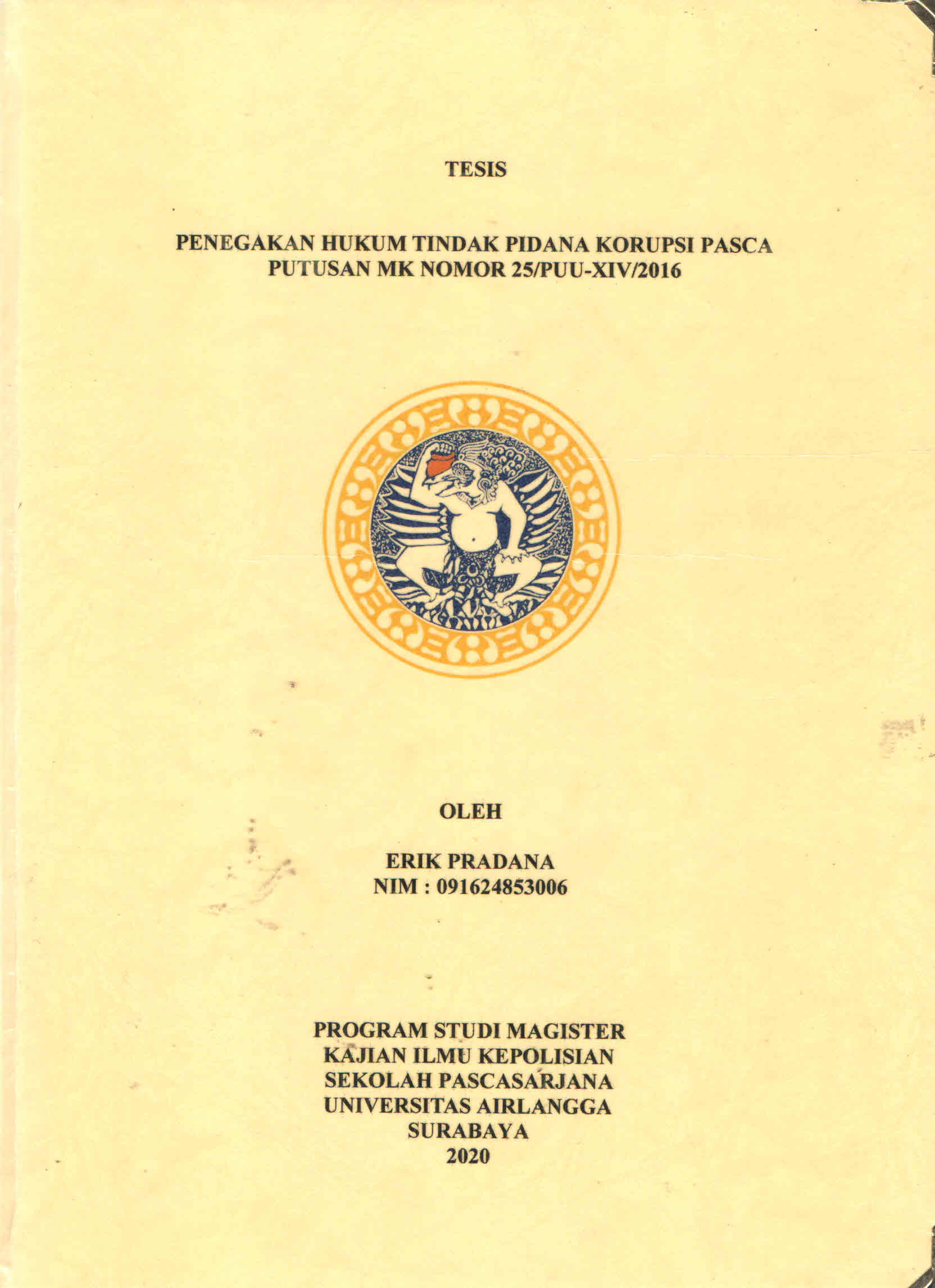 | Subjek | Kajian Ilmu Kepolisian Ilmu Kepolisian Penegakan Hukum Tindak Pidana Korupsi Pasca Putusan MK Nomor 25/PUU-XIV/2016 |