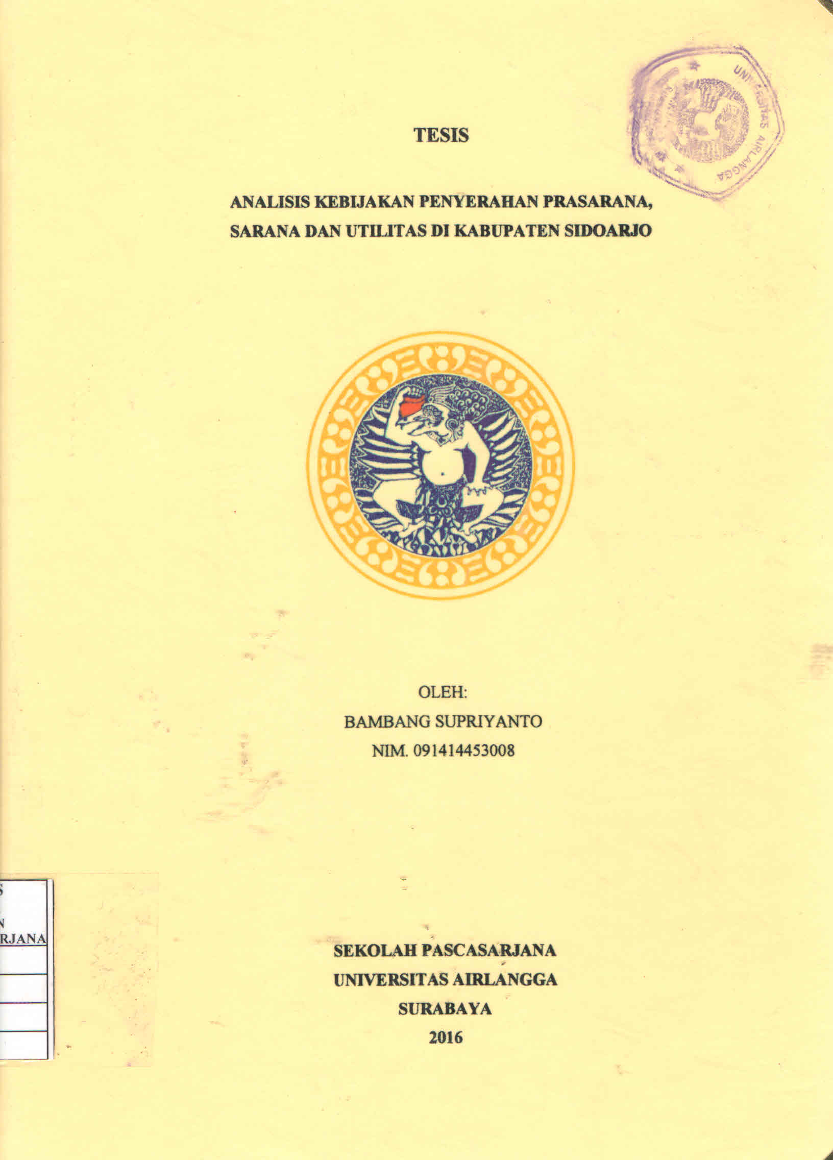 | Judul | Analisis Kebijakan Penyerahan Prasarana, Sarana dan Utilitas di Kabupaten Sidoarjo / Bambang Supriyanto |