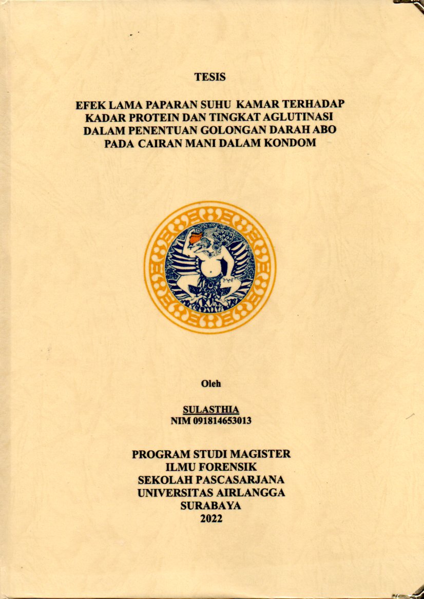 | Judul | Efek Lama Paparan Suhu Kamar Terhadap Kadar Protein Dan Tingkat Aglutinasi Dalam Penentuan Golongan Darah ABO Pada Cairan Mani Dalam Kondom / Sulasthia |