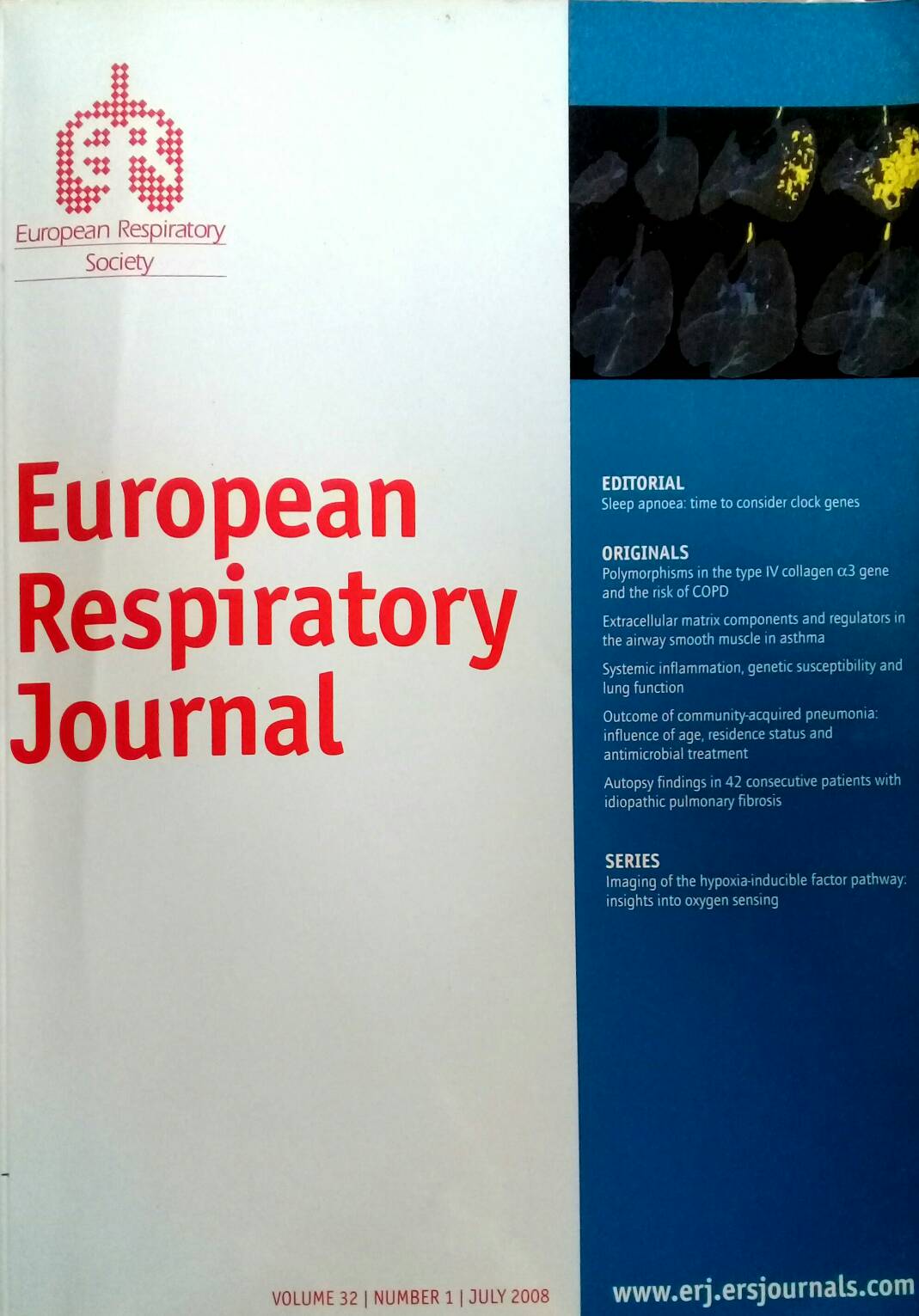 | Catatan | Sleep apnoea: time to consider clock genes Polymorphisms in the type IV collagen a3 gene and the risk of COPD Extracellular matrix components and regulators in the airway smooth muscle in asthma Systemic inflammation, genetic suspectibility and lung function Outcome of community-acquired pneumonia:influence of age, residence status and antimicrobial treatment Autopsy findings in 42 consecutive patients with idiopathic pulmonary fibrosis Imaging of the hypoxia-inducible factor pathway: insights into oxygen sensing |