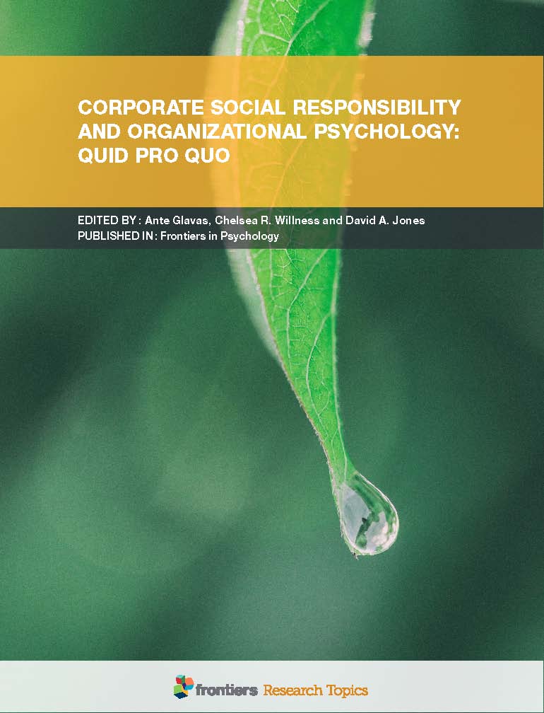 | Catatan | Researchers, corporate leaders, and other stakeholders have shown increasing interest in Corporate Social Responsibility (CSR)-a company’s discretionary actions and policies that appear to advance societal well-being beyond its immediate financial interests and legal requirements. Spanning decades of research activity, the scholarly literature on CSR has been dominated by meso- and macro-level perspectives, such as studies within corporate strategy that examine relationships between firm-level indicators of social/environmental performance and corporate financial performance. In recent years, however, there has been an explosion of micro-oriented CSR research conducted at the individual level of analysis, especially with respect to studies on how and why job seekers and employees perceive and react to CSR practices. This micro-level focus is reflected in 12 articles published as a Research Topic collection in Frontiers in Psychology (Organizational Psychology Specialty Section) titled “CSR and organizational |