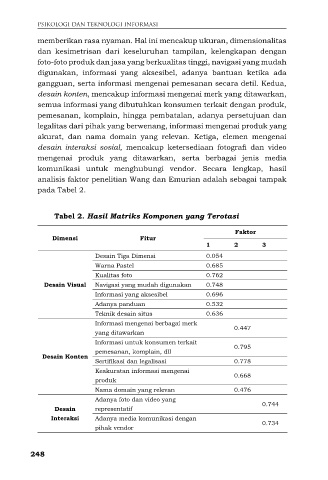 Tabel 2. Hasil Matriks Komponen yang Terotasi