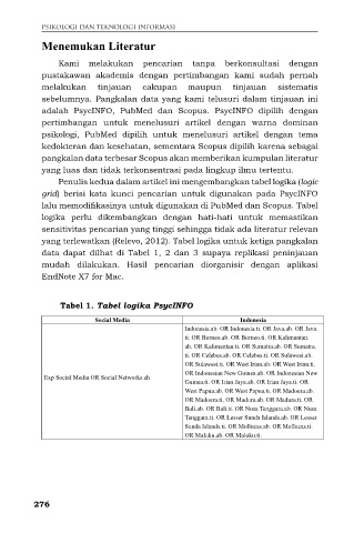 Tabel 1. Tabel logika PsycINFO
