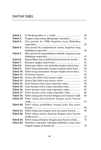 Tabel 11. Preferensi bacaan ......................................................... 61