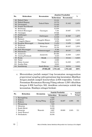 proporsional sampling yaitu persentase tiap kecamatan dikalikan