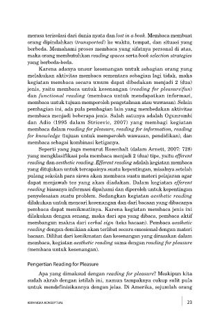 bacaan. Dilihat dari kenikmatan dan kesenangan yang dirasakan dalam