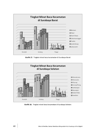 Grafik 17. Tingkat minat baca kecamatan di Surabaya Barat Grafik 18. Tingkat minat baca kecamatan di Surabaya Selatan 60 Minat & Perilaku Gemar Membaca Masyarakat Kota Surabaya di Era Digital