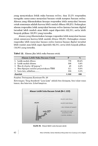 Grafik 20. Alasan lebih suka bacaan cetak