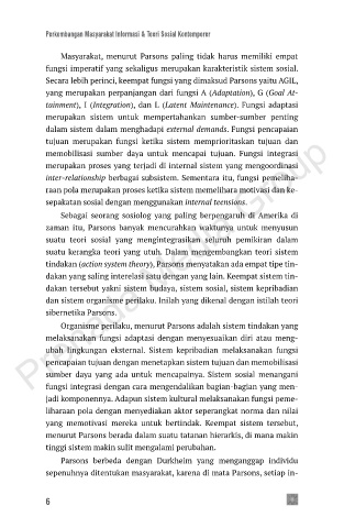 Masyarakat, menurut Parsons paling tidak harus memiliki empat