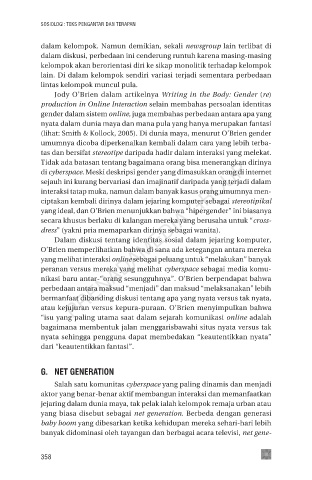 (lihat: Smith & Kollock, 2005). Di dunia maya, menurut O’Brien gender